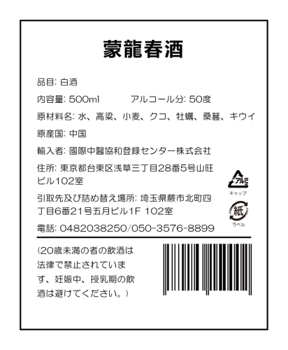 Meng Long Chun酒 50度